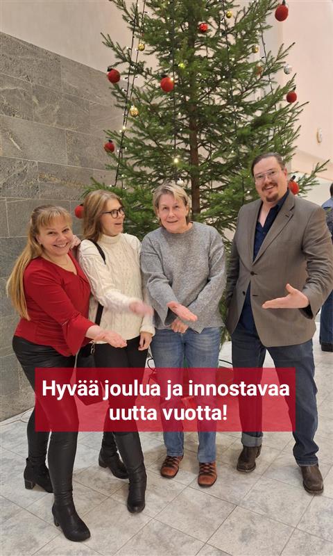 Hyvää joulua toivottavat Elävä Kainuu Leaderin henkilöstö Eeva-Liisa, Anne, Marja ja Ville (sekä kuvasta puuttuva Marjut)